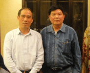 中國抗癌協會常務理事、河南省抗癌協會會長楊文獻教授和《百花散》傳人梅先生合影